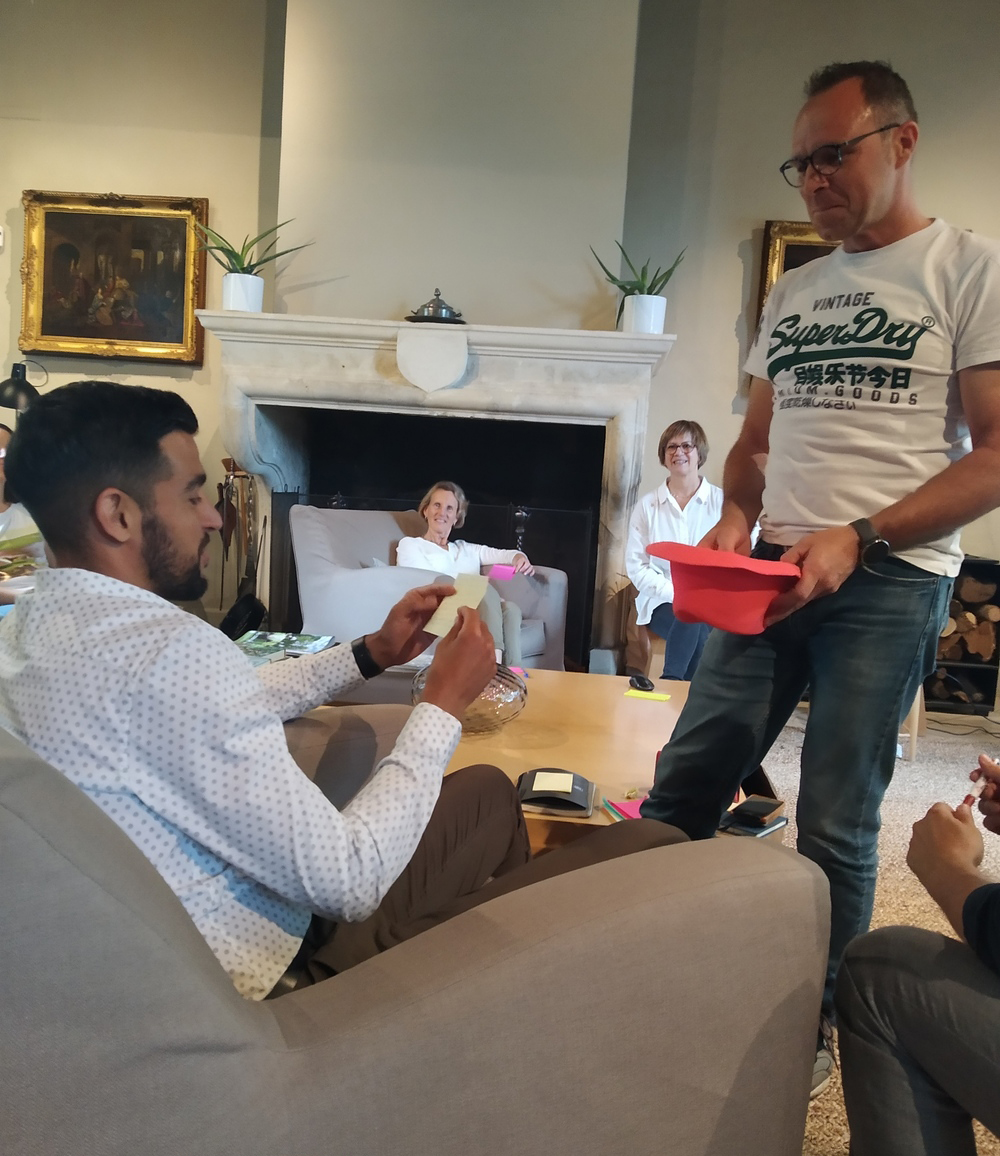 Puis Rodhène a présenté le résultat d’un travail mené avec la méthode « FAIRE », conçue et déployée par EPIGO. Cette fois, l’exercice a consisté en une photographie de leurs qualités au profit de leur ambition professionnelle. Ce que l’on nomme « profil entrepreneurial », et qui s’articule autour de cinq dimensions : métier, client, vision, organisation, humaine. Chaque participant a ainsi pu se reconnaître dans les lignes de la présentation faite individuellement par notre facilitatrice. Etonnés, rieurs, confiants, pensifs, admiratifs, … tous les qualificatifs furent possibles pour décrire les réactions des participants. Tous ont acceptés de passer au crible les réponses apportées au test du jour, bousculant au passage les personnalités plus introverties.